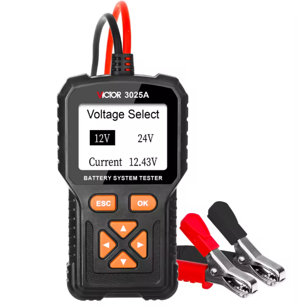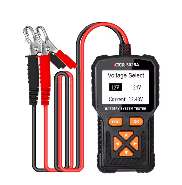 تستر باتری ویکتور مدل 3025Aدستگاهی دقیق و پیشرفته است که برای بررسی عملکرد باتریهای سرب–اسیدی ۱۲ و ۲۴ ولت طراحی شده است. این دستگاه قادر است وضعیت باتری را در هنگام استارت خودرو، فرایند شارژ و تحت بار الکتریکی بهطور کامل و دقیق بررسی کند.اتصال تست چهارسیمی (Kelvin Connection) در این مدل، امکان اندازهگیری بسیار دقیق ولتاژ و مقاومت داخلی باتری را فراهم میکند؛ چرا که خطای ناشی از مقاومت سیمها را به حداقل میرساند.علاوه بر دقت بالا، این دستگاه با داشتن سیستم حفاظت داخلی، ایمنی کاربر را تضمین میکند و از آسیبهای احتمالی ناشی از اتصال اشتباه قطبها، ولتاژ بیش از حد و تماس نامناسب کلمپهای تست جلوگیری میکند.