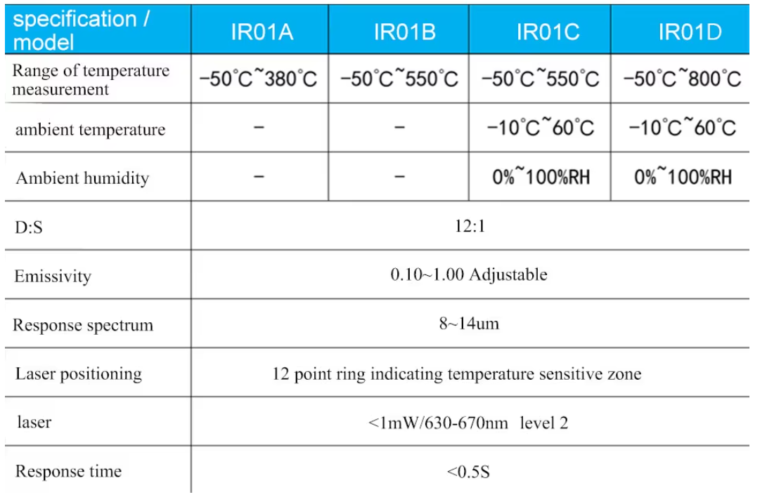 | محدوده دمای اندازهگیری | -50°C تا +550°C / -58°F تا +1112°F |