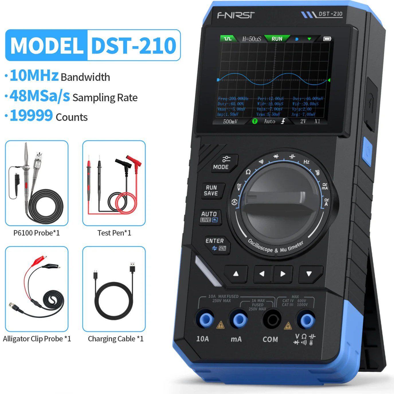 FNIRSI DST-210 نسل جدید ابزارهای اندازه‌گیری دستی است که با هدف افزایش کارایی و کاهش تعداد دستگاه‌های مورد نیاز در جعبه ابزار طراحی شده است. این دستگاه، ۳ قابلیت حیاتی را در یک پکیج فشرده ارائه می‌دهد: