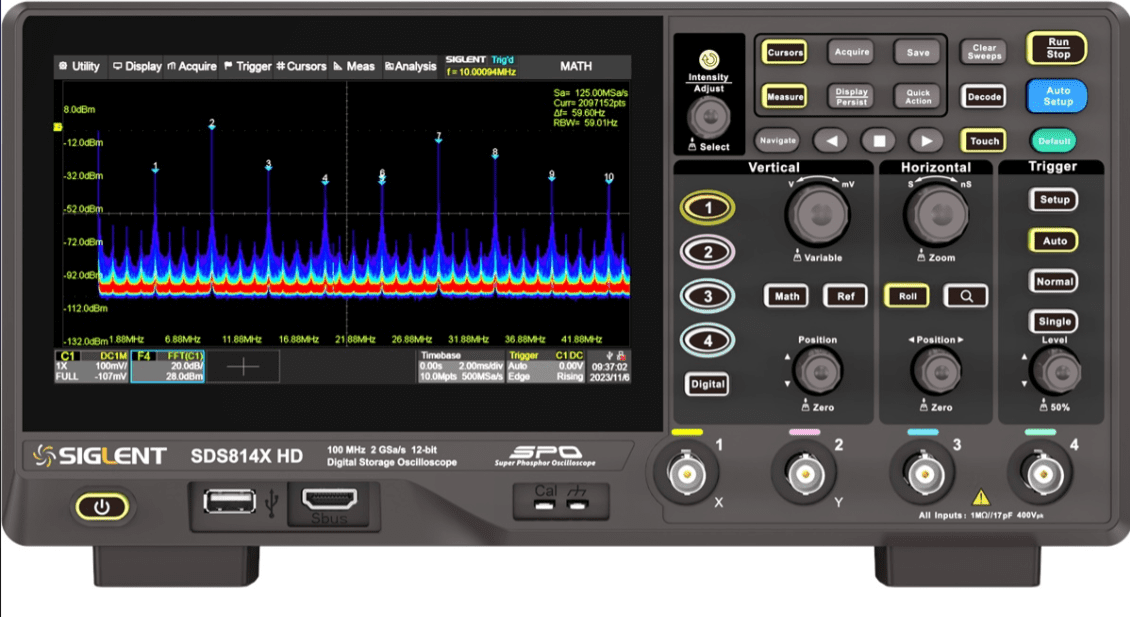 اسیلوسکوپ رومیزی HD SDS814X سیگلنت 100 مگاهرتز 4 کانال با نرخ نمونه برداری 2GSa/s