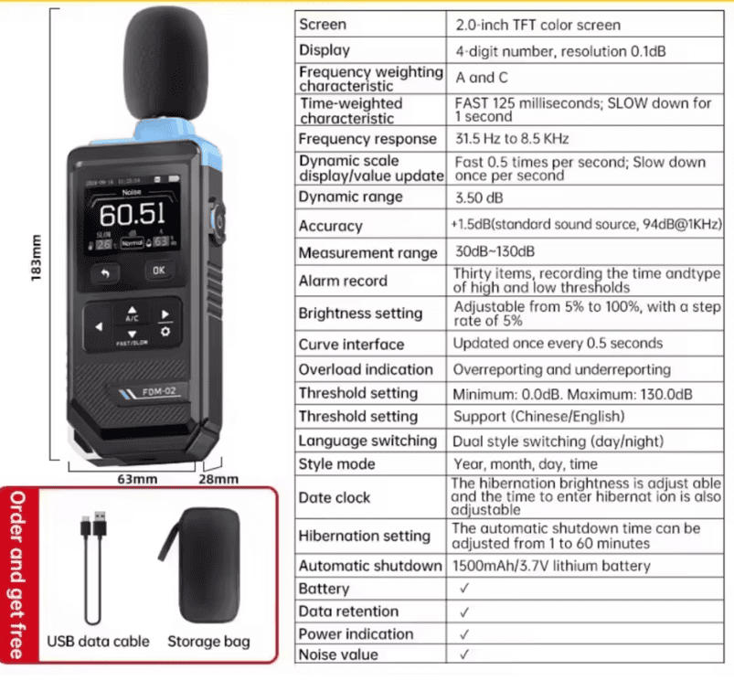 دقت اندازهگیری: تقریباً ±1.5 dB (در فرکانس 1 kHz)