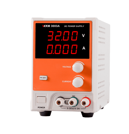 منبع تغذیه رومیزی ویکتور مدل 3003A یک دستگاه سوئیچینگ DC با خروجی قابل تنظیم از ۰ تا ۳۲ ولت و جریان ۰ تا ۳ آمپر است که برای کاربردهای آزمایشگاهی و تعمیراتی طراحی شده است. این دستگاه دارای نمایشگر دیجیتال دوگانه ۴ رقمی برای ولتاژ و جریان، قابلیت قفل تنظیمات، سیستم محافظت در برابر اتصال کوتاه و نویز کم است و با ابعاد جمعوجور و وزن سبک، حمل و استفاده آسانی دارد. 3003A برای تست و تعمیر بردهای الکترونیکی، پروژههای تحقیقاتی و تأمین انرژی مدارهای الکترونیکی متغیر مناسب بوده و با عملکرد پایدار و قابلیتهای حفاظتی، گزینهای مطمئن برای کاربران حرفهای و علاقهمندان به الکترونیک محسوب میشود.