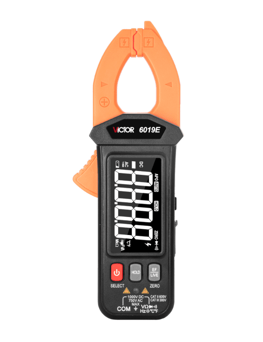 کلمپ متر ویکتور مدل 6019E یک مولتیمتر دیجیتال کلمپی با دقت بالا است که قابلیت اندازهگیری جریان AC تا 200 آمپر را دارد. این دستگاه دارای نمایشگر LCD با حداکثر نمایش 5999 رقم، فک 32 میلیمتری، و ویژگیهایی مثل خاموشی خودکار، آزمایش دیود، پاسخ فرکانسی 50Hz تا 60Hz و تشخیص ولتاژ بدون تماس (NCV) است. همچنین از باتری لیتیومی 3.7V با شارژ Type-C استفاده میکند و در دماهای 0 تا 40 درجه سانتیگراد و رطوبت زیر 75% کار میکند.