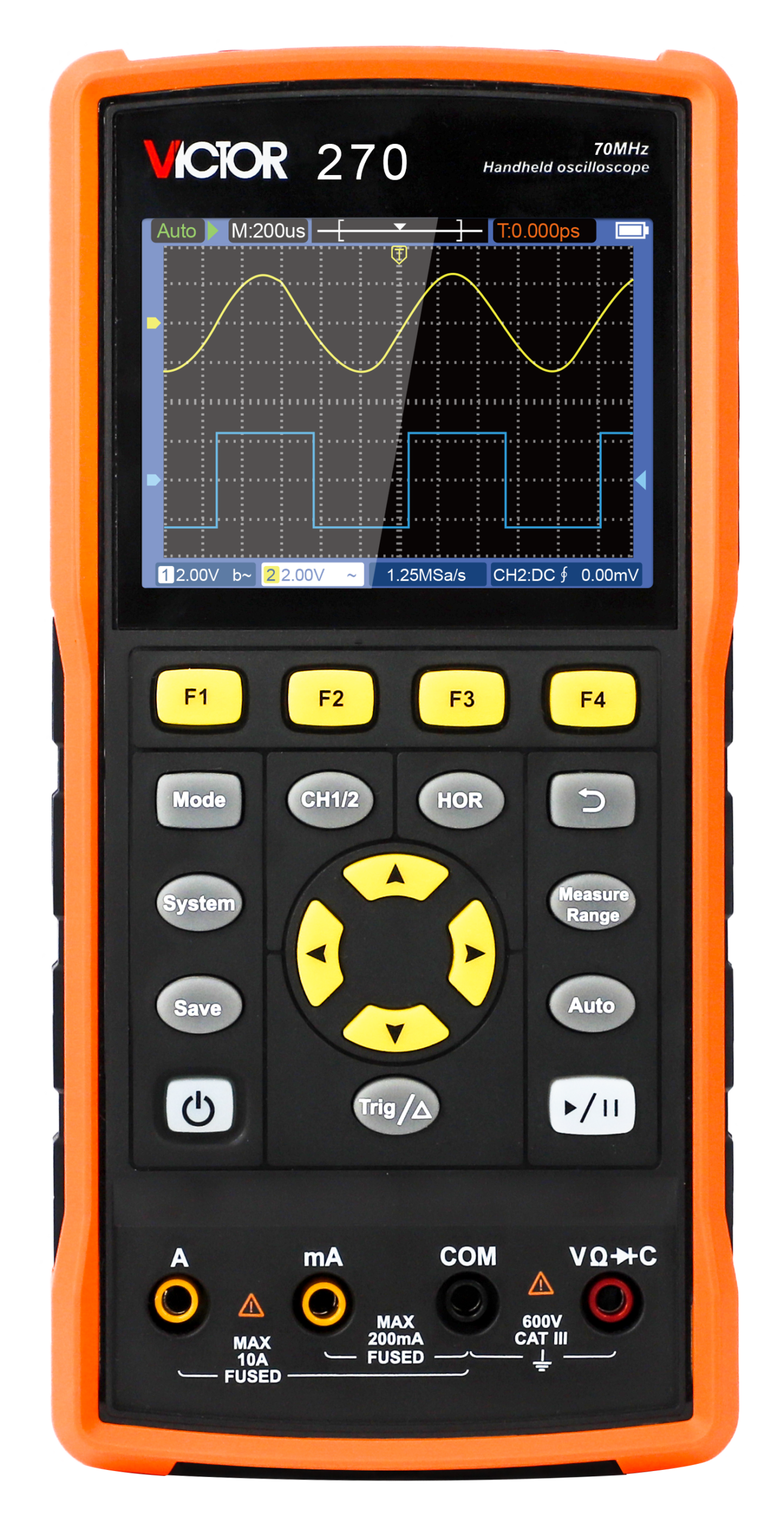 | Victor 270S | 70 MHz | 250 MSa/s | 4.5 Digit | دارد (25 MHz) |